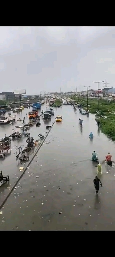 Heavy Rain downpour in Lagos Saturday morning has led to floods in different parts of Lagos State, including expressways, streets, and homes hindering so many from going to church today.