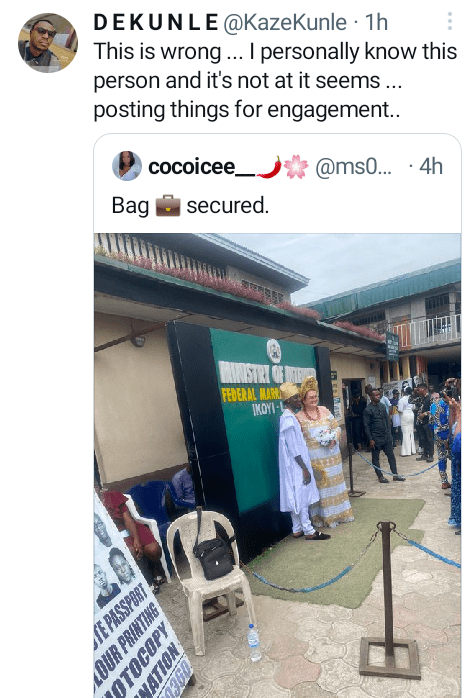 One Dekunle wrote: “This is wrong … I know this person and it’s not at it seems … posting things for engagement,