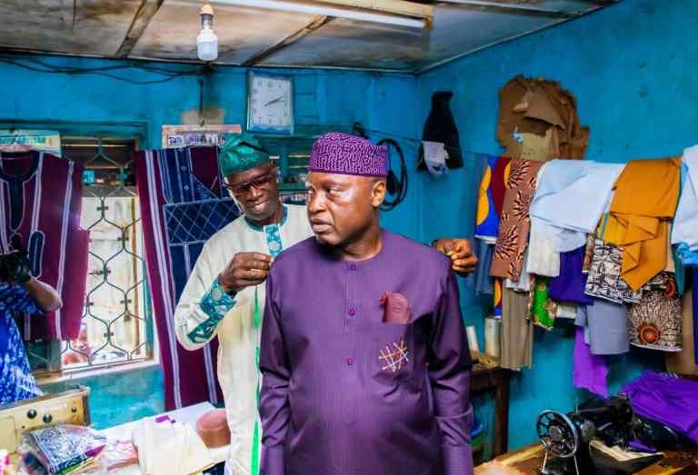 Sharing photos, Oyebanji said, I paid a surprise visit to Mr. David Aina, a highly respected tailor who owns Davis Cuts Fashion House, located around Oluyemi Kayode Stadium in Ado-Ekiti.
