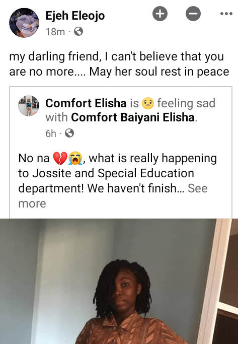 Meanwhile, friends and former coursemates have taken to Facebook to mourn her.