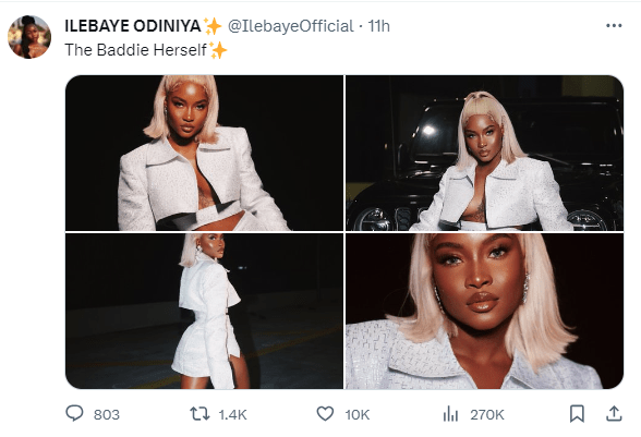 However, Ilebaye Odinaya has decided to address the clamor. Taking to her Twitter and Instagram accounts, she shared an image of herself in the controversial outfit.She wrote;“the baddie herself.”