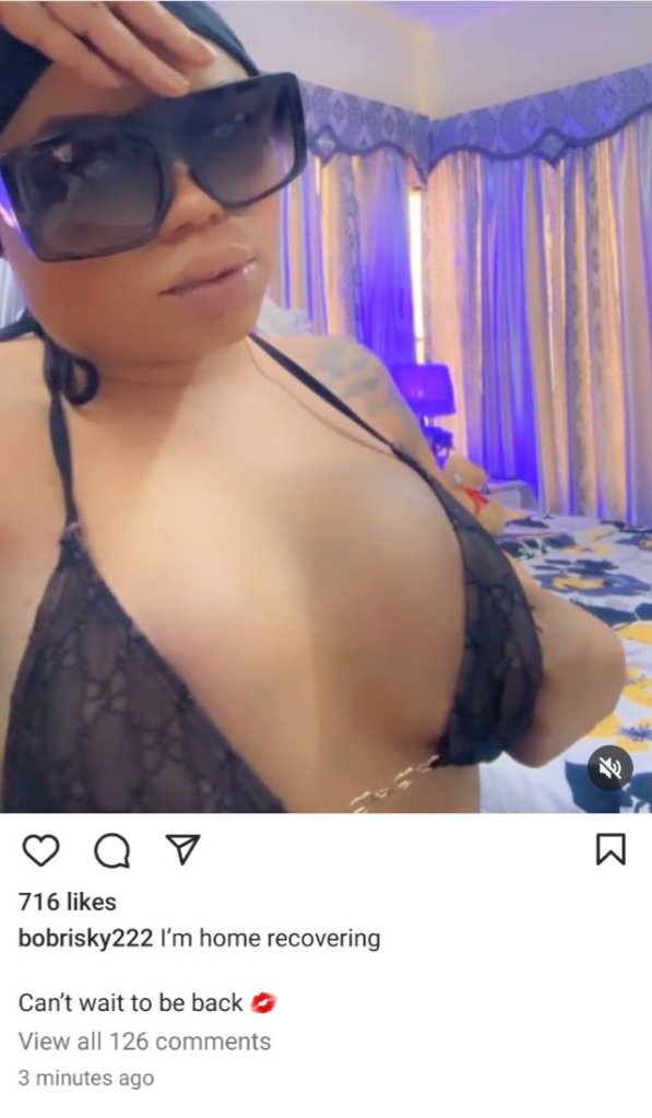 Today, he returned to flaunt his new boobs. Wearing a bikini that exposed his “cleavage,” Bobrisky disclosed that his new boob job is healing nicely.