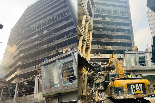 The popular 10-storey Mandilas building on Broad Street, Lagos Island Local Government Area of Lagos State, was torched in the early hours of Monday.