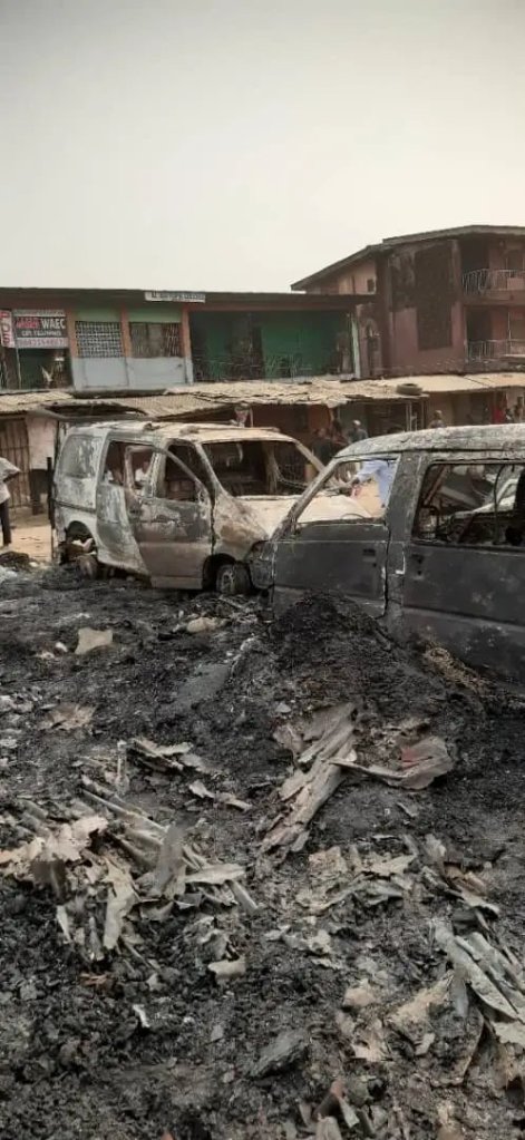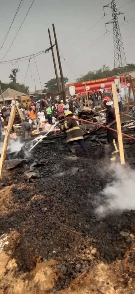 18 recycling iron/steel shops, 19 diesel lister generators, 34 Different types of motorcycle machines, five 14-seater buses, three cars, and two trucks were affected by a massive market fire at a multiple-purpose sawmill market located at Awori bus stop behind GTB Bank, Abule Egba, Lagos.