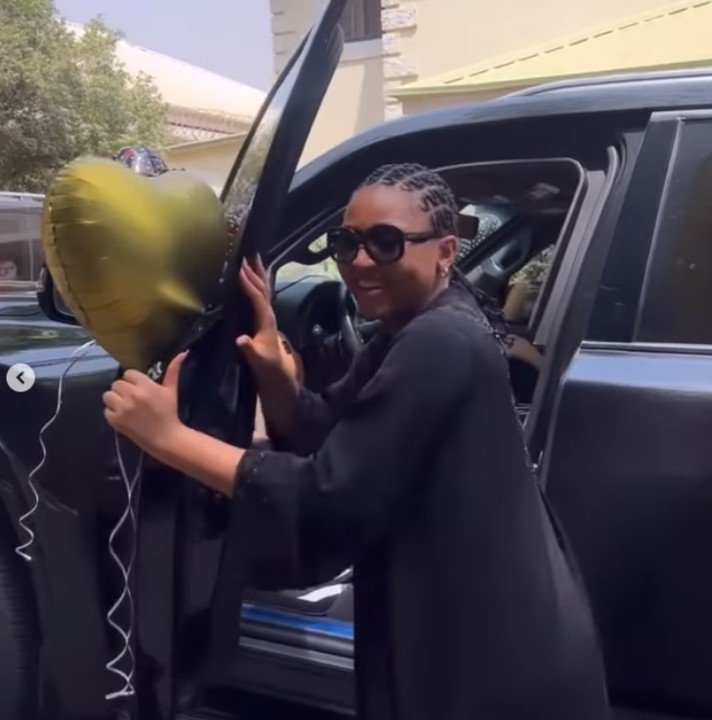 Regina Daniels’ Instagram feed was adorned with snapshots and videos showcasing the stunning vehicle, adorned with ribbons and a giant red bow, parked in front of their lavish residence. In one post, the actress can be seen embracing her husband with joy and gratitude, captioning the image with heartfelt words of appreciation.