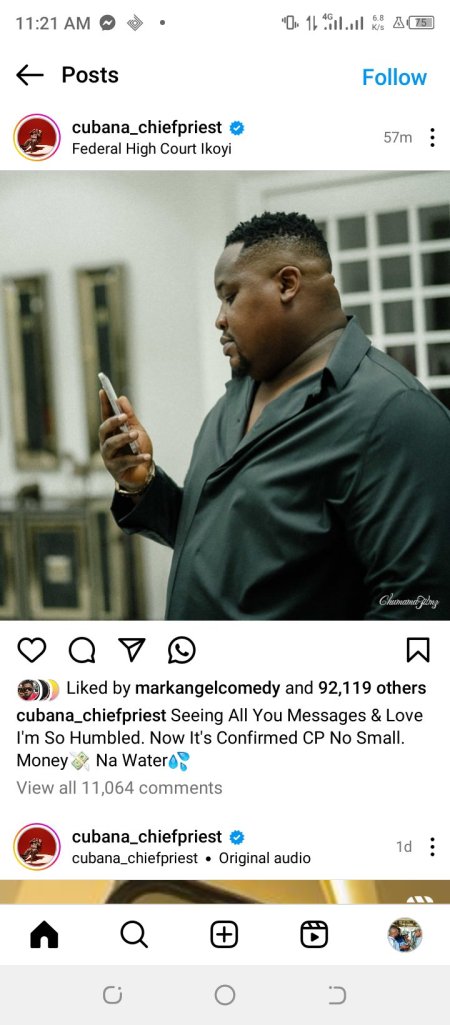 Cubana Chief Priest has boasted that money is not a problem for him after he was granted N10m bail.