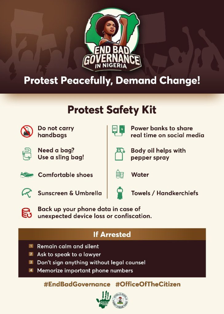 Also, protesters come August 1st are advised on how to dress and things to come along with to the protest ground.