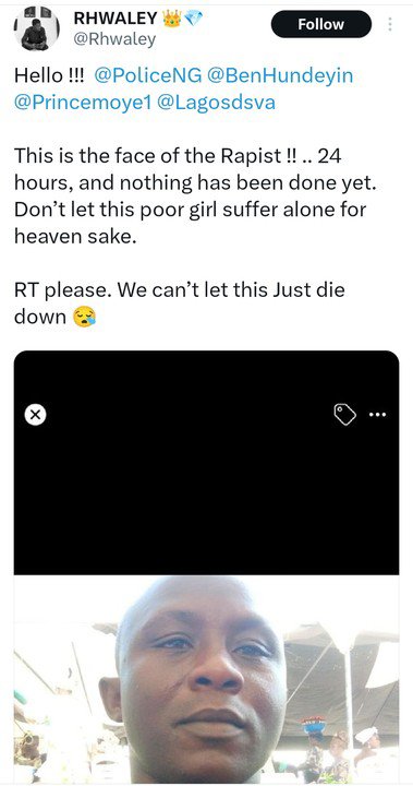According to the post on X formerly known as Twitter the rapist is a son of the landlord where the 14-years-old girl reside with her parents in the Alakuko area of Lagos state.