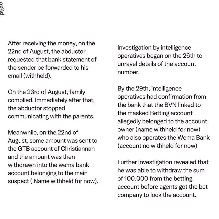 The abductors contacted her family and demanded a sum of N3m as a ransom before they could release her.