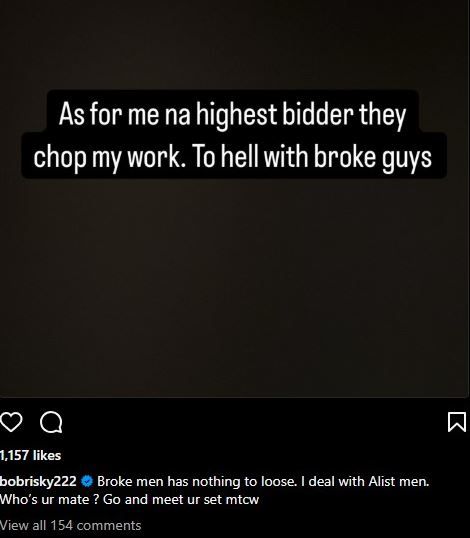 In a now-deleted post, Bobrisky disclosed that he is only interested in the higher bidder and only sleeps with men who offer higher prices.